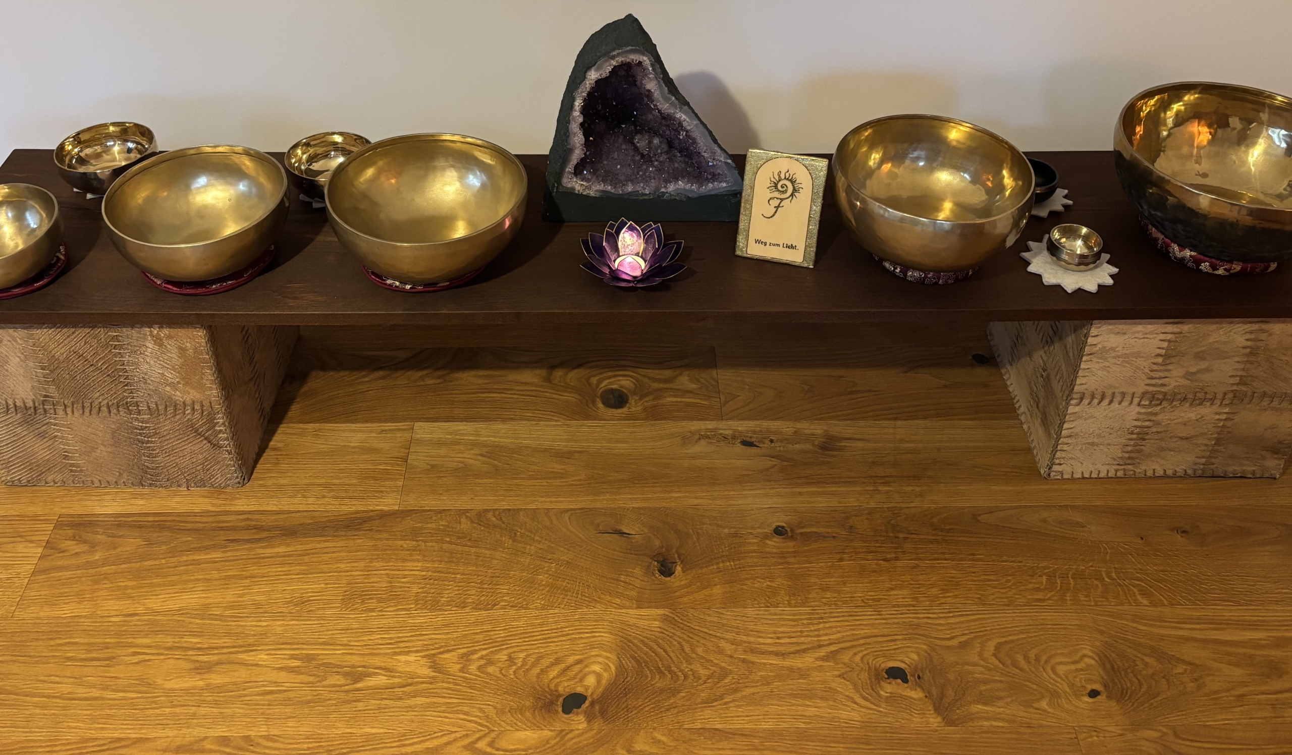 Die von mir angebotene Klangschalen-Therapie ist eine sanfte Art, Verspannungen und Blockaden zu lösen. Jede Zelle des Körpers kommt dabei harmonisch ins Schwingen. Dies führt rasch zu einer inneren Balance und einem Gefühl von Einheit, welches für eine tiefe Entspannung sorgt. Durch Klang und Vibration können Disbalancen verschiedenster Art ausgeglichen werden. Die Klangschalen-Massage ist ausgesprochen angenehm und wohltuend und erzeugt ein Gefühl von „sich tragen lassen von sanften Wellen“. Überdies wirken sich die einzigartigen Töne von Klangschalen auch auf diverse körperliche Befindlichkeiten positiv aus, wie etwa zur Normalisierung des Blutdrucks, gegen Asthma, bei Erschöpfungszuständen, indem es die Tätigkeit der Nebennieren unterstützt, zur Verbesserung der synaptischen Reaktionen im Gehirn, sowie das Ausbalancieren von Meridianen. Klangschalen helfen auch gegen „hyperaktive“ Symptome. Es ist rundum eine behutsame und zugleich tiefreichende Therapie-Methode, bei der ich intuitiv vorgehe. Möchtest Du den Zauber dieser Klangmassage erleben?.